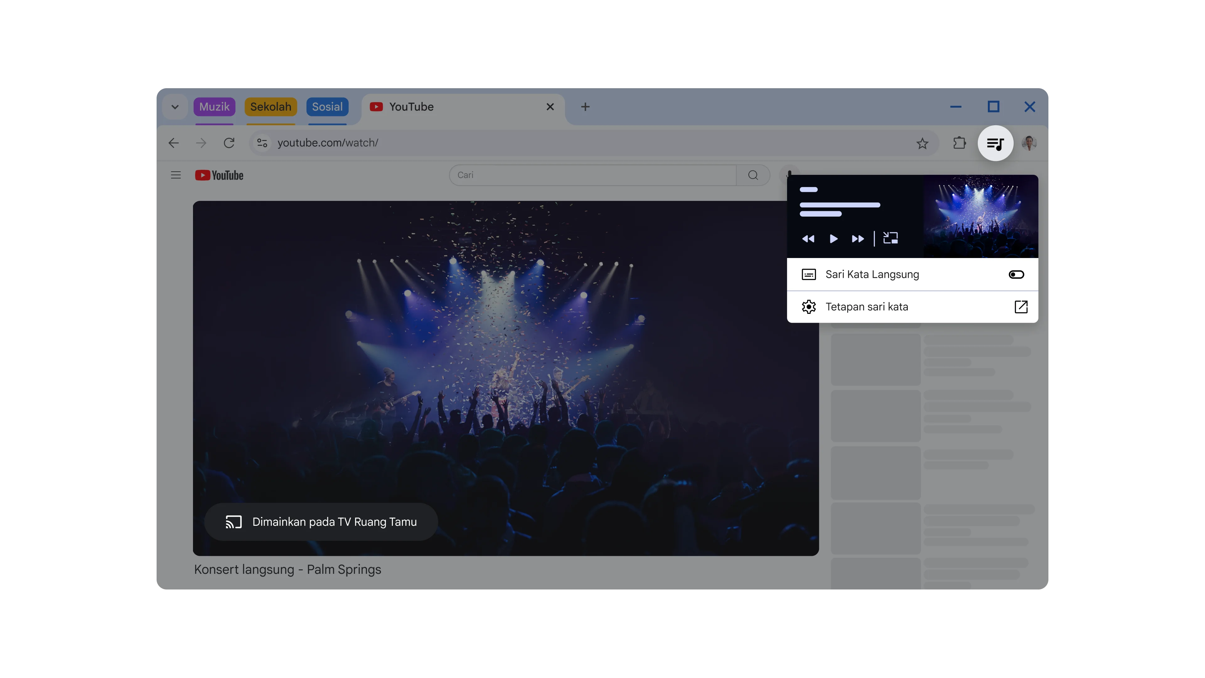 Video konsert dimasukkan dalam mod gambar dalam gambar.